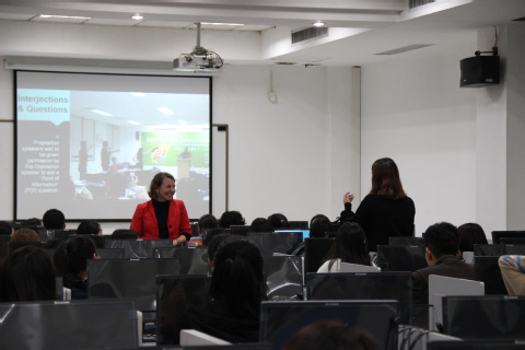 新闻网讯(实习记者 韩亚萍 摄影记者 方舒婷) 10月19日下午,英语系外教Alex在文波楼语音教室开展了以“演讲与辩论的基本理论、培训方法以及实战技巧”为主题的讲座。Alex不仅是辩手、教师,还是一名研究人员。她曾两次代表澳大利亚大学参加国际辩论赛并获得最佳辩手的荣誉称号。